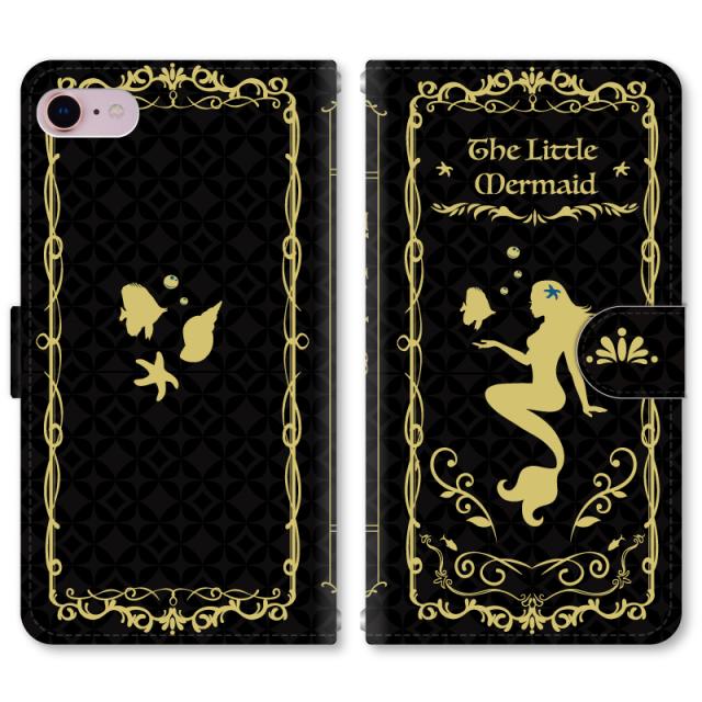 スマホケース 手帳型 iPhone13 iPhoneSE2 アイフォン 8 aquos sense GooglePixel xperia galaxyなど多機種制作対応 m788_マーメイド[ブラック]