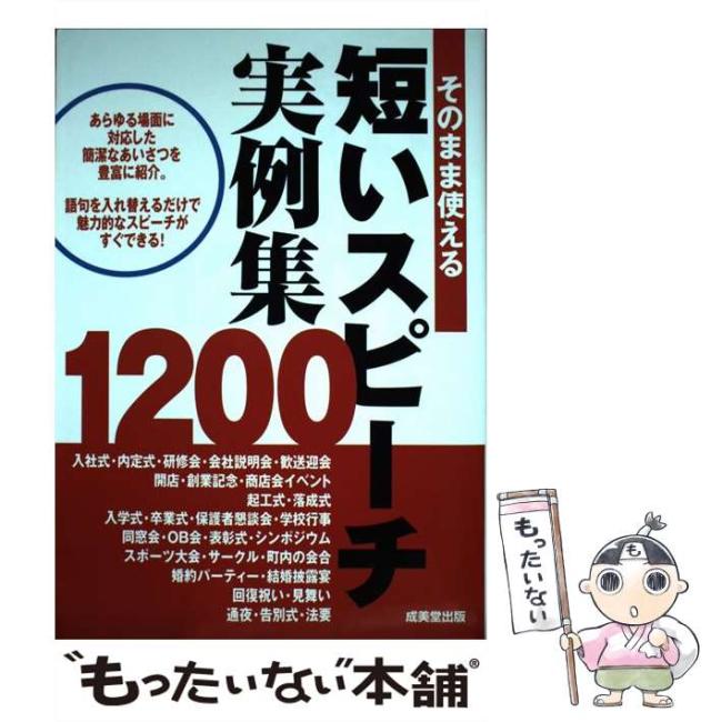 商品名:【中古】 そのまま使える短いスピーチ実例集1200 / 成美堂出版編集部、成美堂出版株式会社 / 成美堂出版 [単行本]【メール便送料無料】