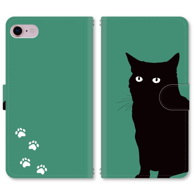 スマホケース 手帳型 iPhone13 iPhoneSE2 アイフォン 8 aquos sense GooglePixel xperia galaxyなど多機種制作対応 m463_グリーン黒猫