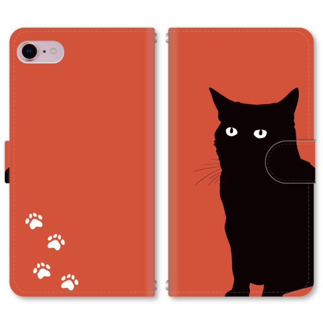 スマホケース 手帳型 iPhone13 iPhoneSE2 アイフォン 8 aquos sense GooglePixel xperia galaxyなど多機種制作対応 m467_レッド黒猫