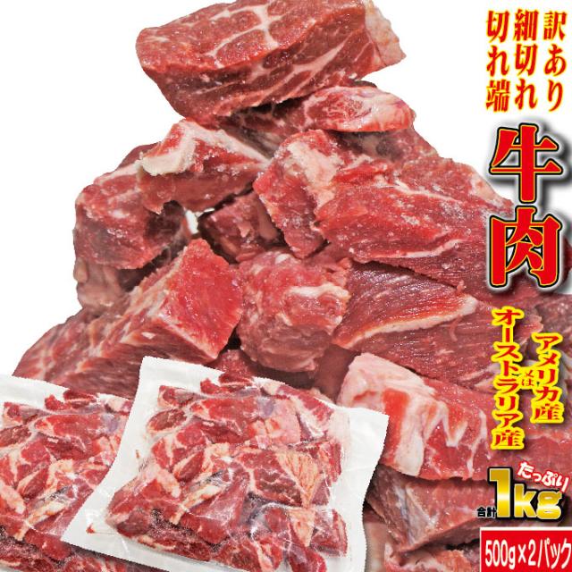 牛肉細切れ・切れ端・訳あり500gX2袋入 合計1kg 冷凍 アメリカ又はオーストラリア産 幅広い料理に活用!【焼肉】【炒め物】【こま切れ】【切り落とし】