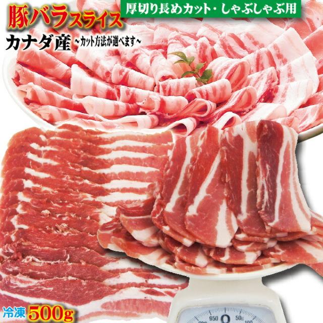 豚バラスライス カナダ産 500g 冷凍 厚切り長めカット・しゃぶしゃぶ用 カット方法が選べます【豚肉】【焼肉】【豚しゃぶ】【cut】