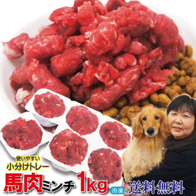【送料無料】馬肉粗挽きミンチ肉 1kg(338g×3パック)便利な小分けトレー 冷凍 ※2セット以上ご購入でおまけ付き ペットと一緒に食べれるヘルシーな馬肉生肉【ペットフード】【ドッグフード】【犬用】【猫用】