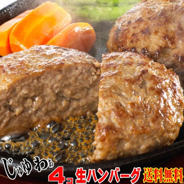 【送料無料】お試し用手作り生ハンバーグ4個入 肉汁たっぷりジュ—シーお肉たっぷり