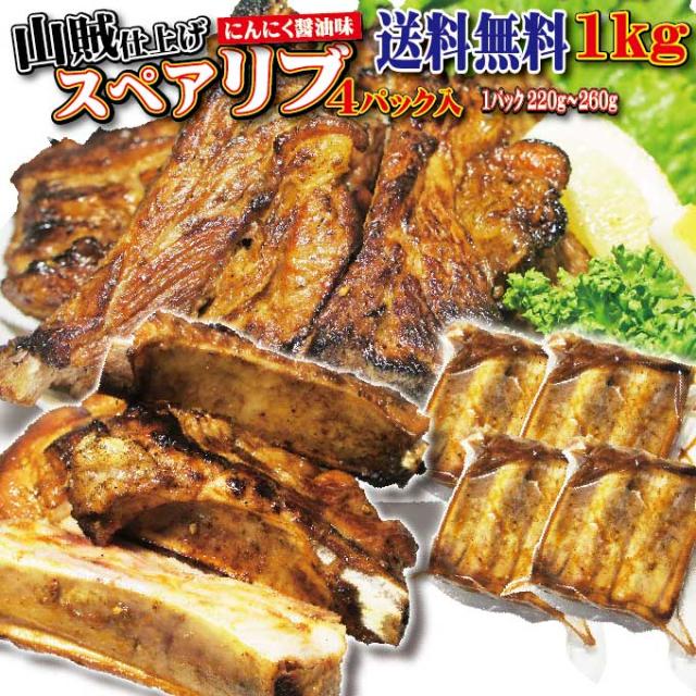 【送料無料】スペアリブ山賊仕上げ(にんにく醤油味) 1kg(250g×4パック)5人前分 冷凍 【骨付き肉】【BBQ】【焼肉】【カルビ】【肉汁】【豚肉】10P05Nov16