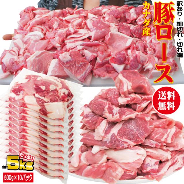 【送料無料】カナダ産豚ロース細切れ・切れ端・訳あり500gX10袋入 半冷凍・完全冷凍を選んだ場合完全に凍結していない場合があります
