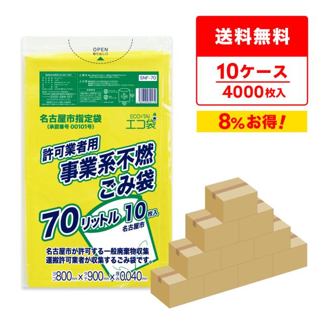 SNF-70-10 名古屋市事業系許可業者用ごみ袋 70リットル 0.040mm厚 不燃 黄 10枚x40冊x10箱/ ゴミ袋 ごみ袋 送料無料