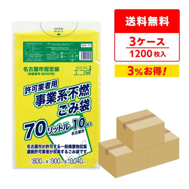 SNF-70-3 名古屋市事業系許可業者用ごみ袋 70リットル 0.040mm厚 黄 10枚x40冊x3箱/ ゴミ袋 ごみ袋 送料無料