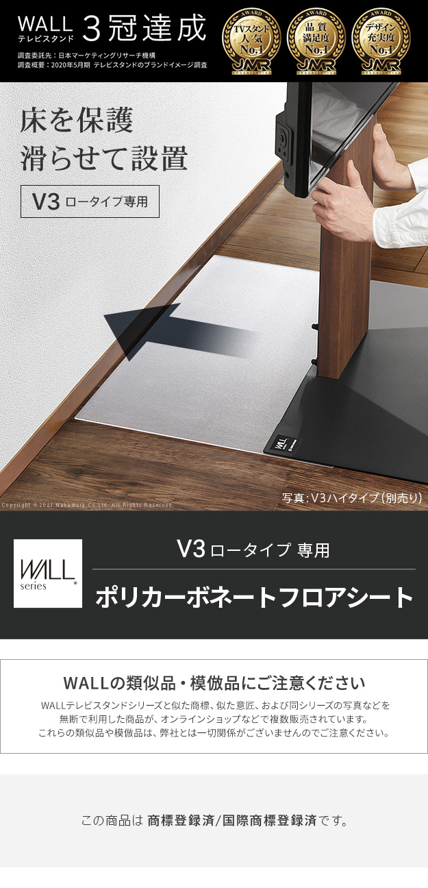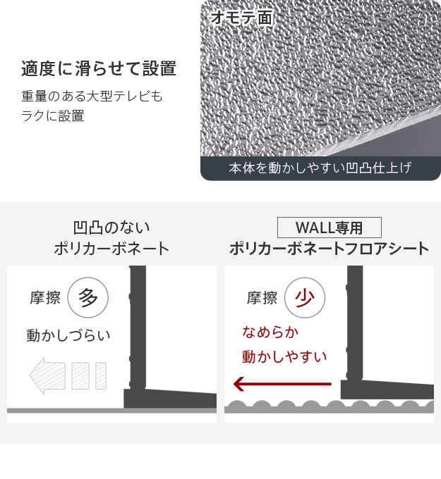 【キーワード】 壁寄せ テレビスタンド インテリア WALL オプション グッドデザイン おしゃれ テレビ台 テレビスタンド 薄型 ポリカ板 床傷防止