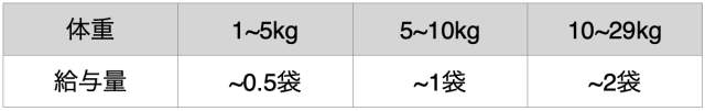 ※給与量は目安ですので、愛犬のコンディションを観察しながら与えてください。