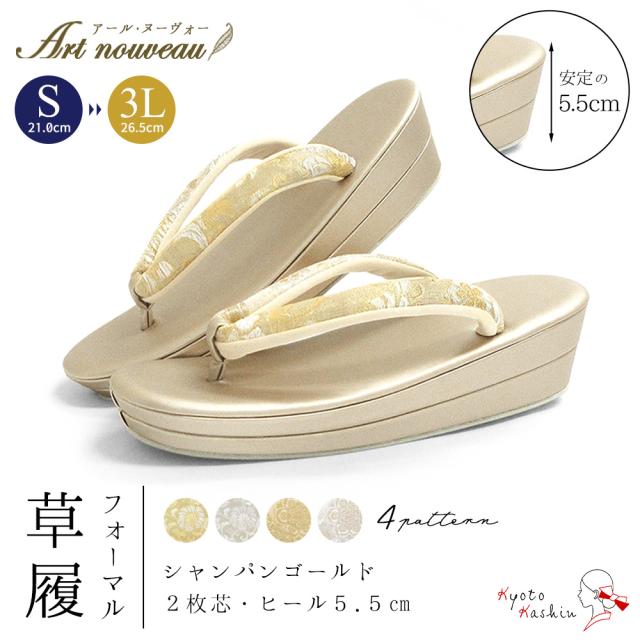 草履 レディース アールヌーヴォー 礼装 黒留袖 留袖 S M L LL 3L サイズ フリーサイズ 小さいサイズ 大きいサイズ ゴールド シルバー 金 銀 結婚式 披露宴 入学式 卒業式 お宮参り フォーマル