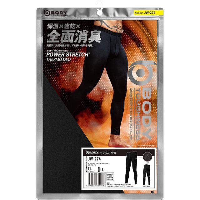 おたふく手袋 メンズ インナー パワーストレッチ サーモデオ ロングタイツ アンダーウェア スポーツインナー 防寒着 保温 速乾 全面消臭 ブラック 黒 送料無料 OTAFUKU JW-274