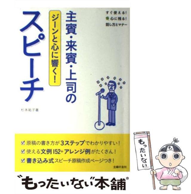 商品名:【中古】 主賓・来賓・上司のスピーチ ジーンと心に響く! (すぐ使える! 心に残る! 話し方とマナー) / 杉本 祐子 / 主婦の友社 [単行本(ソフトカバー)]【メール便送料無料】