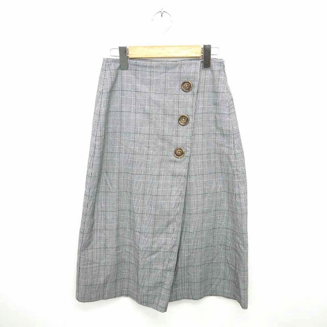 【中古】ジーユー GU スカート タイト ミモレ丈 ロング 千鳥格子 飾りボタン S グレー ブラック 黒 /TT8 レディース