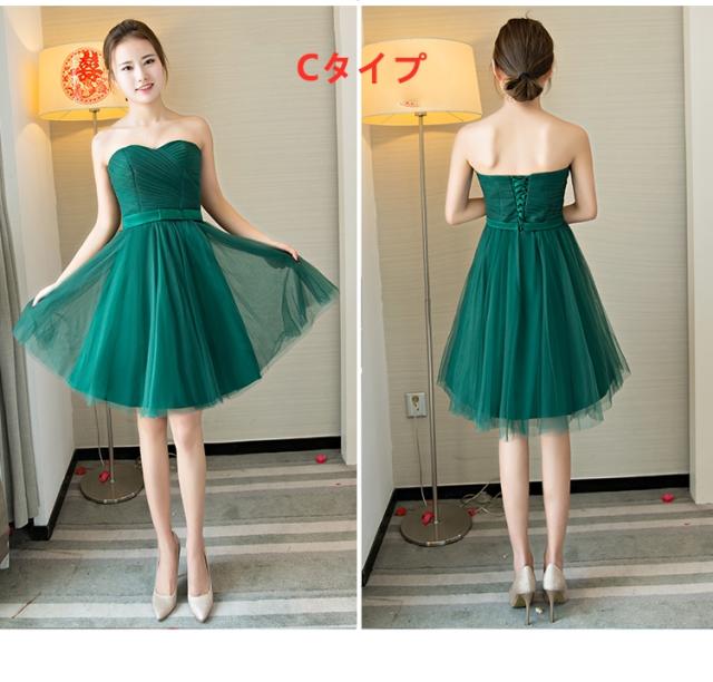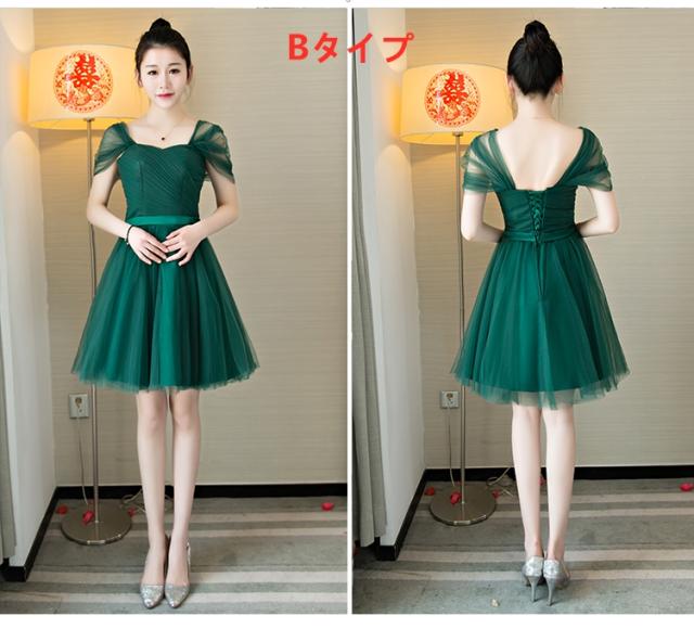 超可愛い パーティドレス ミニドレス ワンピ チュールスカート ショート ブライズメイド 緑 結婚式 二次会 発表会 卒業式 XS~3XL D125