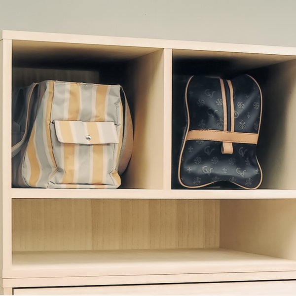 縦の仕切りは取り外し可能です。普段使いの小さなバッグから大きな旅行バッグなど、幅広い収納が可能です。