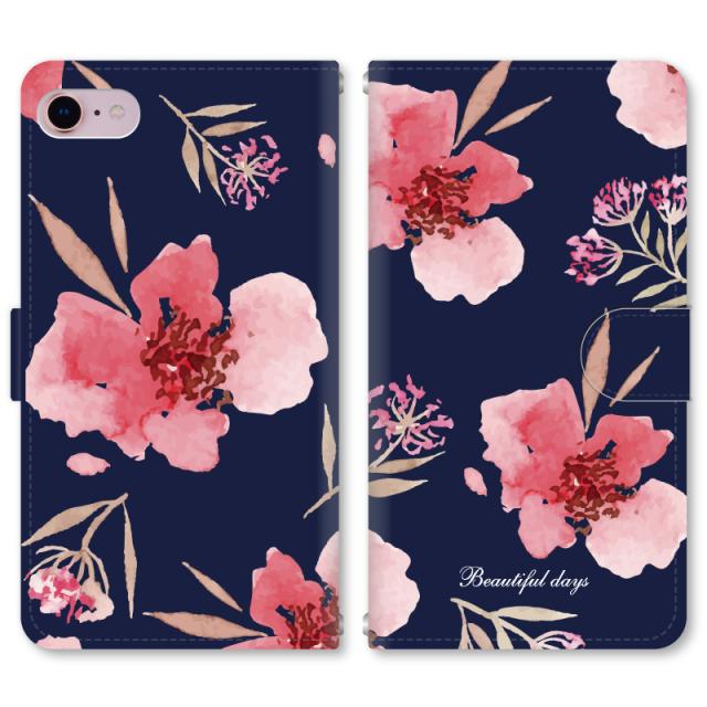 スマホケース 手帳型 iPhone13 iPhoneSE2 アイフォン 8 aquos sense GooglePixel xperia galaxyなど多機種制作対応 m095_赤黒フラワー柄