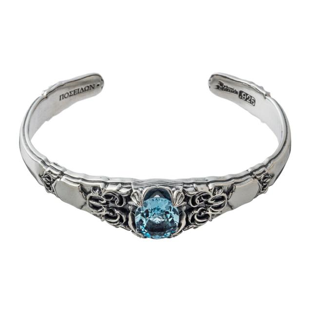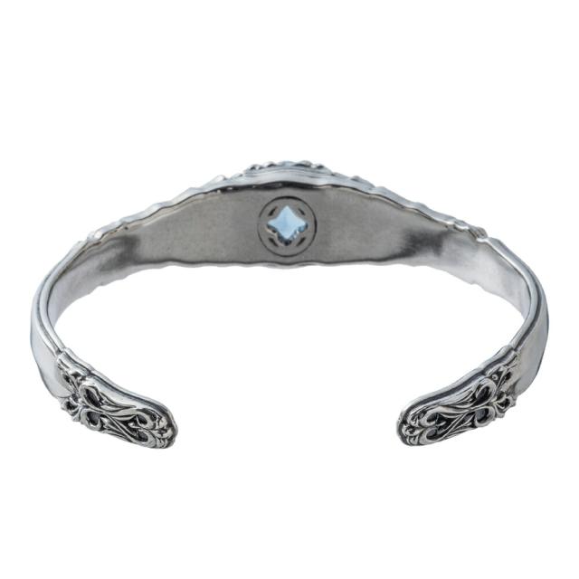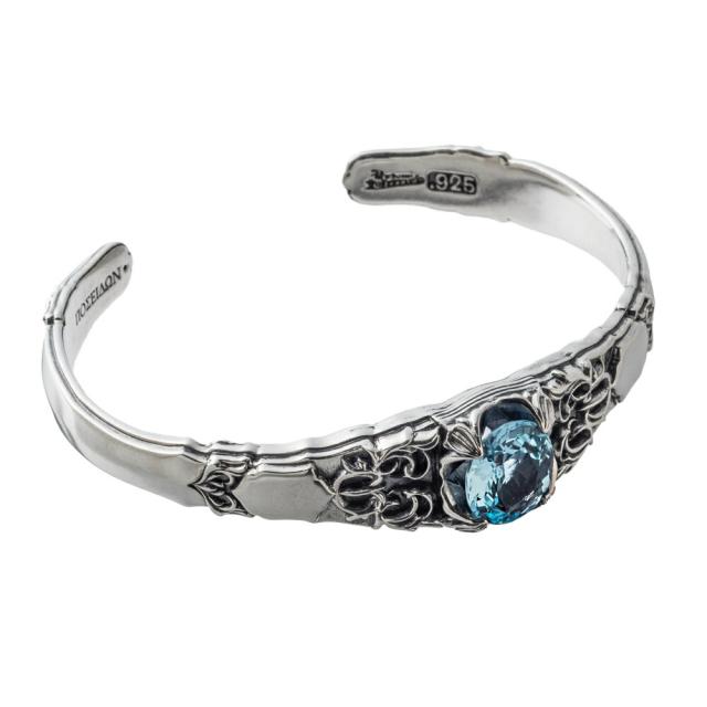 繊細なカッティングが施されたトパーズをセンターにマウントしたバングル。