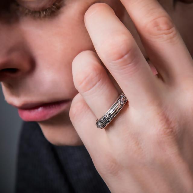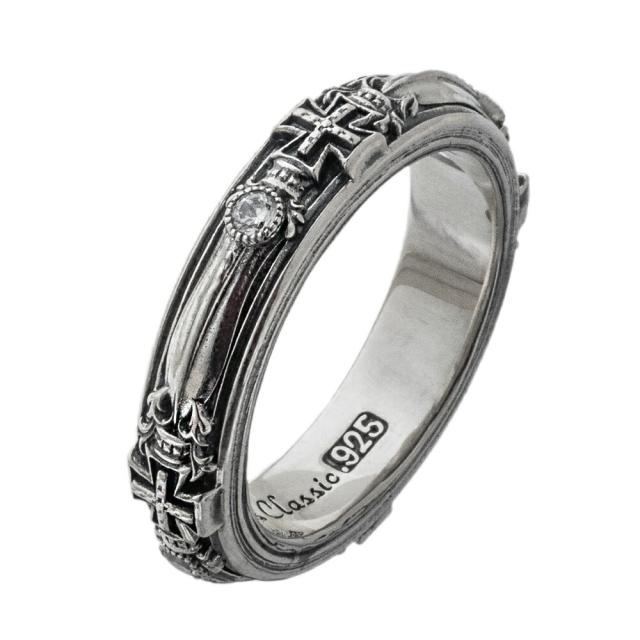 クロスから連なる剣のモチーフリング。そのモチーフが周回したデザイン。