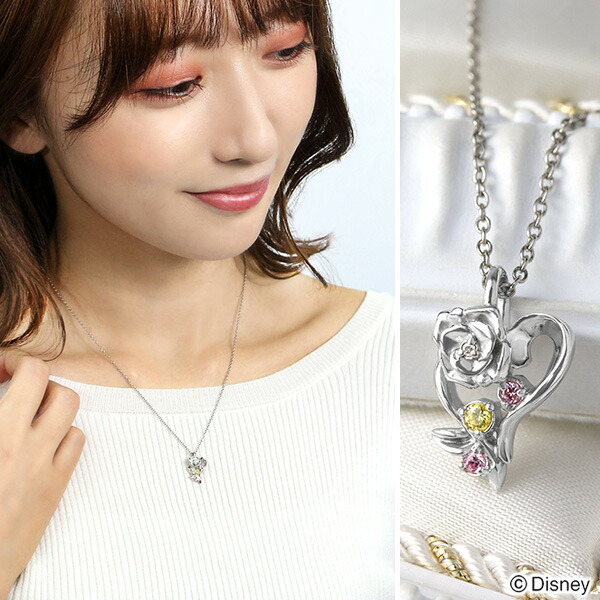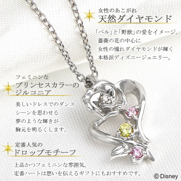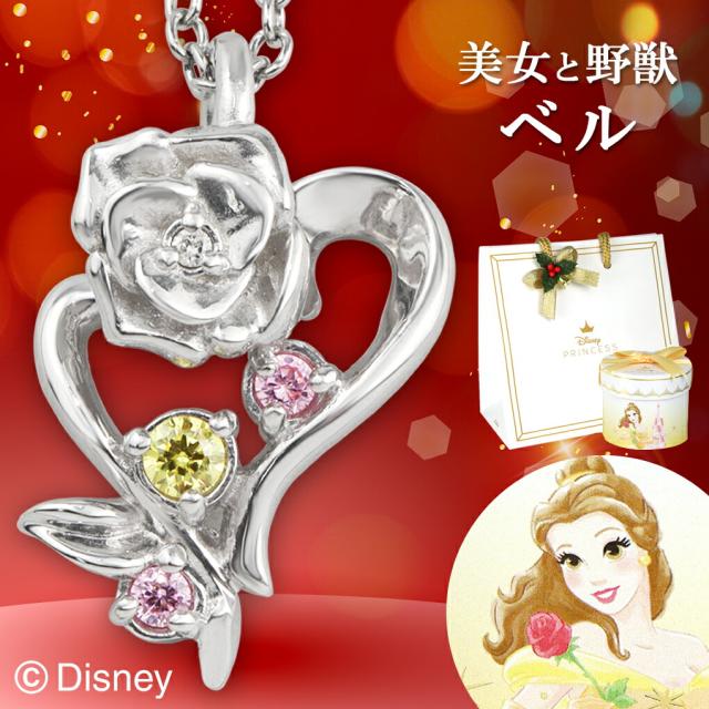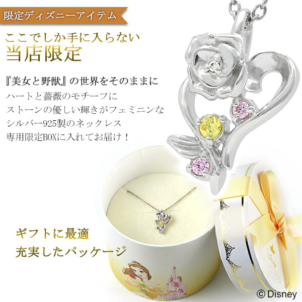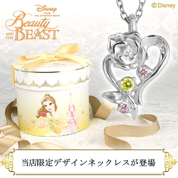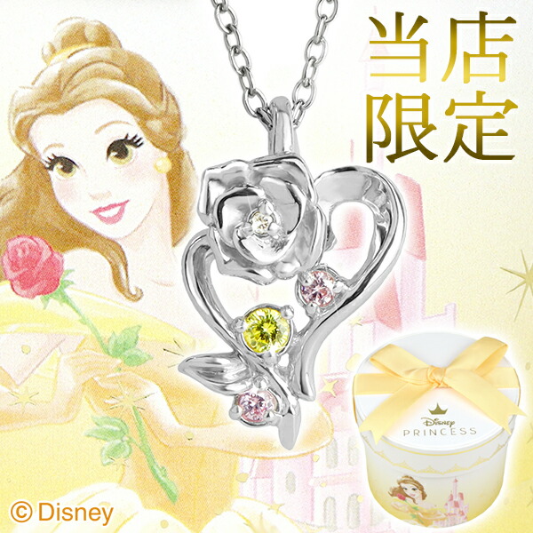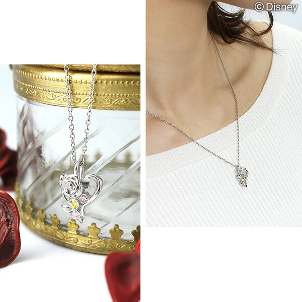 ディズニー 当店限定 美女と野獣 ベル ネックレス 限定 公式 オフィシャル ディズニープリンセス Disney グッズ ダイヤモンド ハート 薔薇 バラ 花