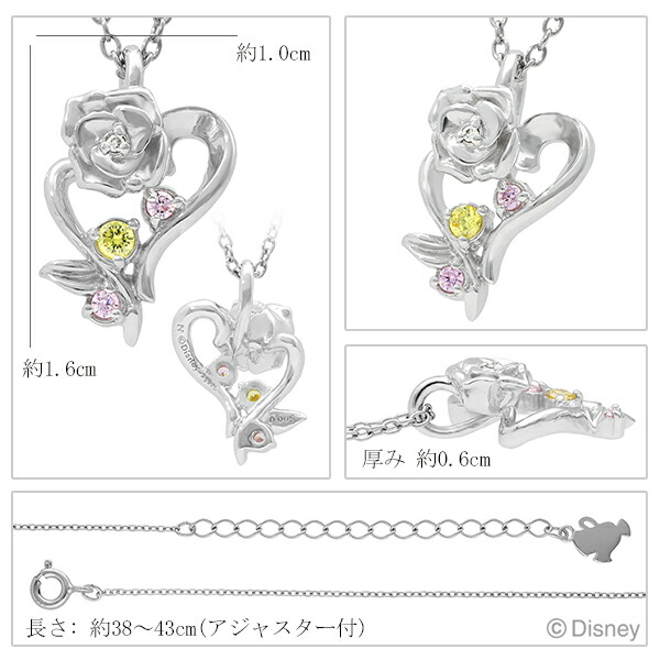 (シルバーアクセサリー シルバーペンダント シルバーネックレス シルバー925 レディースアクセサリー レディースネックレス ネックレス ペンダント キャラクタージュエリー キャラクター ファングッズ コレクターズアイテム ディズニー ディズニージュエリー ディズニーネックレス Disney ディズニープリンセス プリンセス ファンタジー 映画 メルヘン 童話 美女と野獣 beauty and the Beast ベル チップ ハート オープンハート バラ 薔薇 花 魔法 シルバー 黄色 イエロー ピンク 淡い 天然ダイヤモンド 天然ダイアモンド キュービックジルコニア ブルージルコニア)