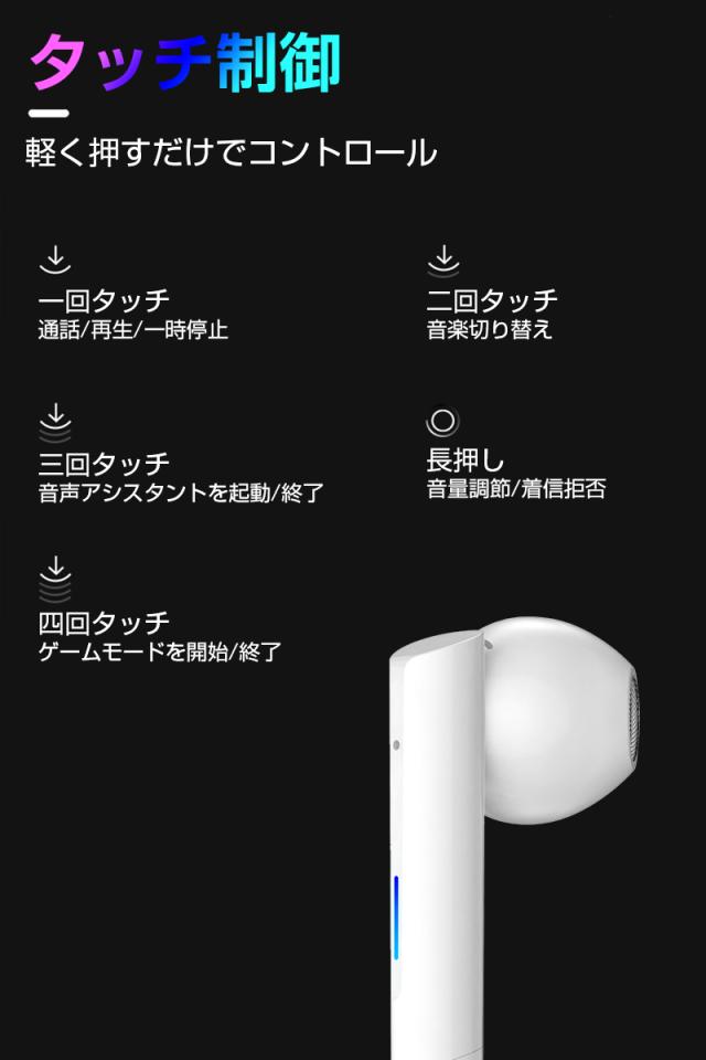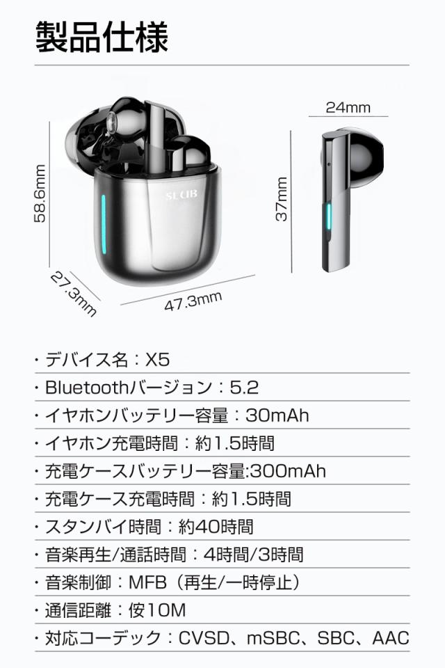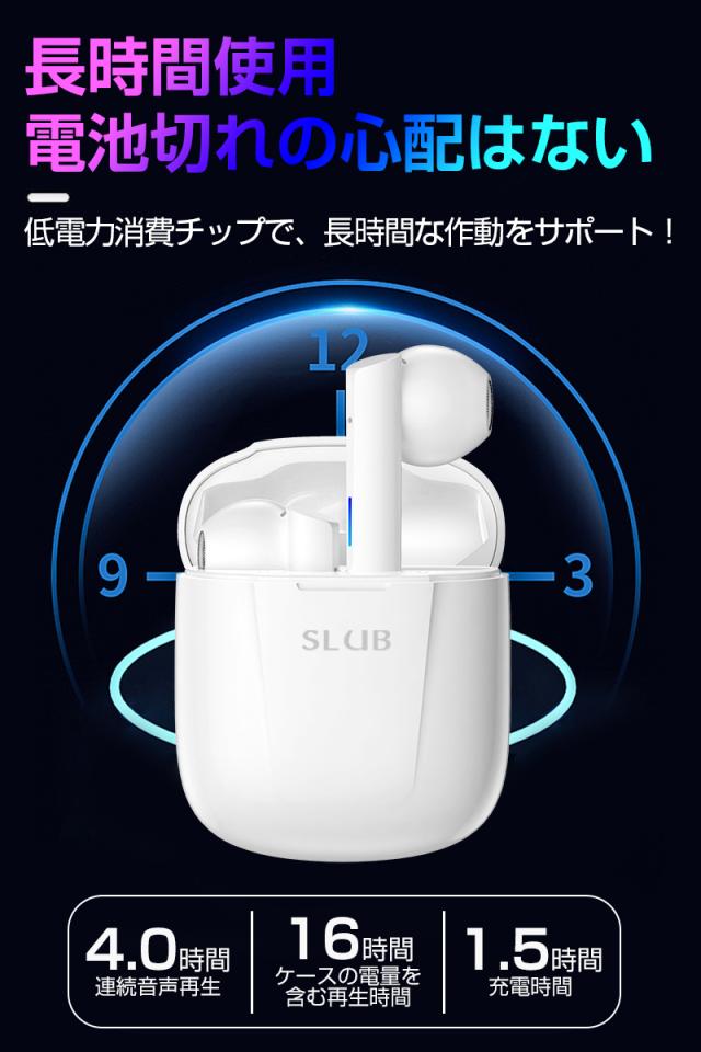 イヤホン本体だけで、音楽、通話は4時間連続使用でき、充電ケースに合わせて16時間以上も可能となって、充電時間僅か1.5時間。(※再生可能時間は、音量、再生する内容、使用環境によって異なります)。充電ケースのサイズは:58.6*27.3*47.3mmです。コンパクトで、どこにも収納でき、スーツのポケットに入れても目立ちにくいサイズ感。