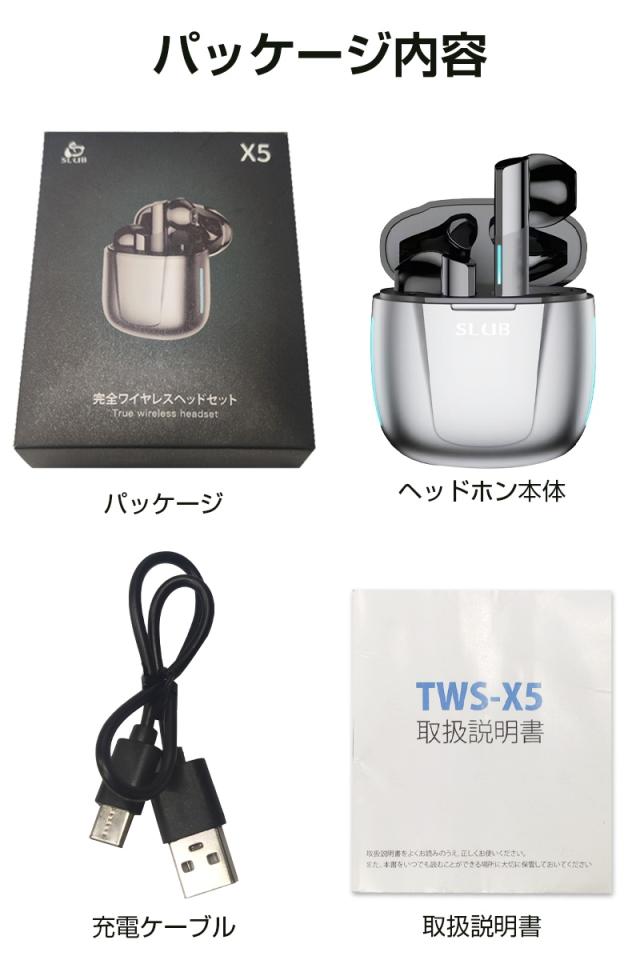 パッケージリスト:ワイヤレスヘッドセット*1、充電ケーブル*1、日本語取扱説明書*1
