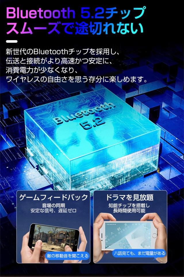 Bluetooth5.2 イヤホンはAACの音楽フォーマットが対応しており、ご使用のデバイスによって、最適なコーデックを選択できます。そして、クラブやライブ会場のような迫力のある音源を体験することができます。