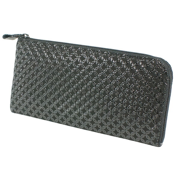 印伝 甲州印伝 印傳屋 上原勇七 財布 長財布 束入れ 2315 輪繋ぎ小 黒地×黒漆 鹿革 本革 レザー 和柄 ブランド 冬ギフト 縁起 春財布 贈り物 YM01