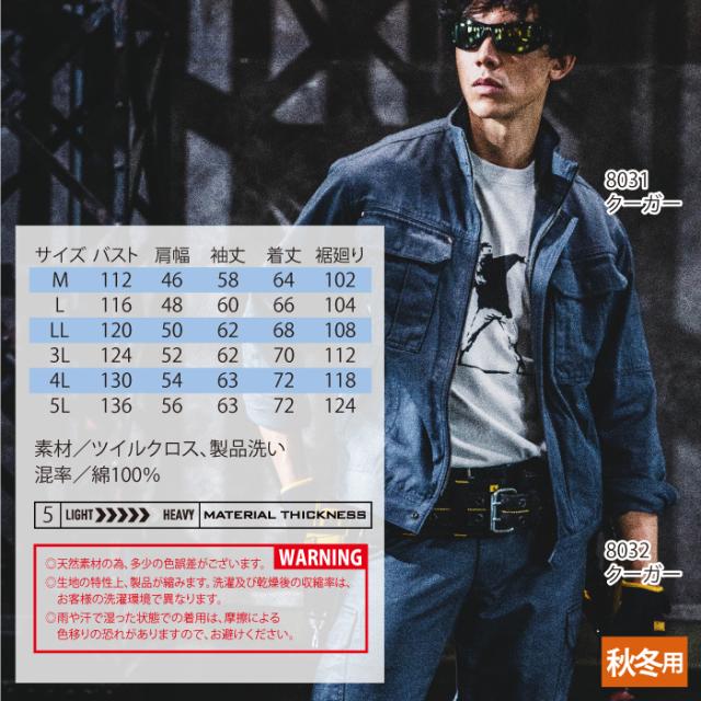 作業服 秋冬用 バートル BURTLE 作業着 8031 ジャケット 5L