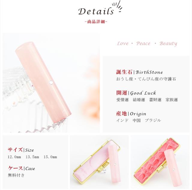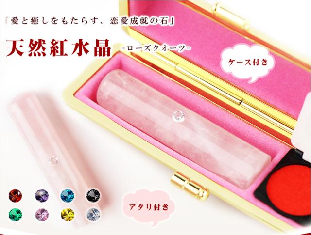 特価:4,999円【天然紅水晶印鑑 12.0mm〜15.0mm アタリ付き ケース付き】ネコポス発送【アタリ付き水晶印鑑新登場】 印鑑 はんこ 宝石印鑑 女性に大人気 かわいい 愛情運 ローズフォーツ