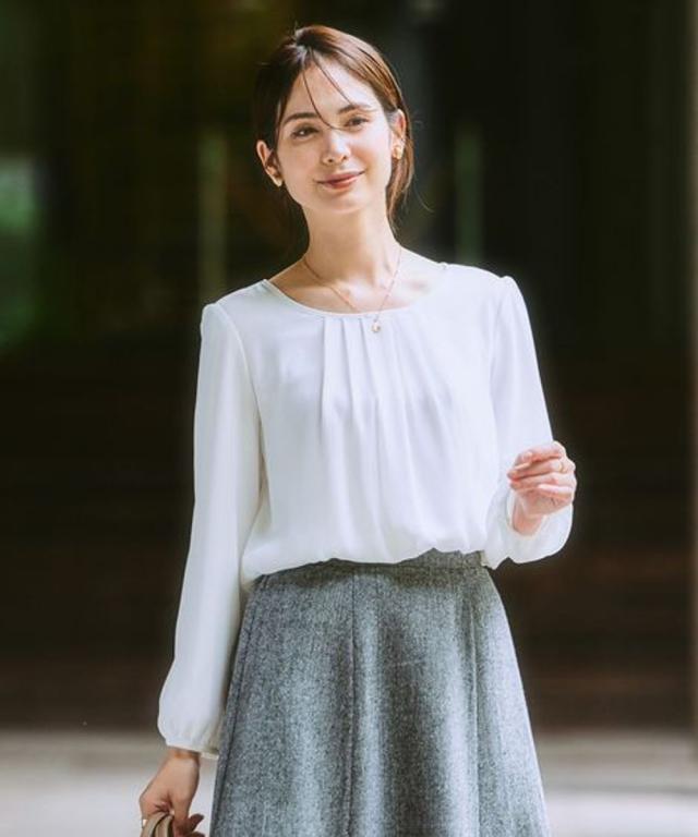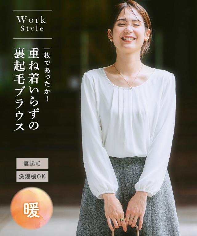 ◆ニッセンの大人気シフォンブラウスのあったかシリーズ・毎年人気のきれいめあったかシフォンブラウスに今年も新色が登場!・人気の秘密は、下着の透けが気にならないカットソー裏地付!さらに裏起毛でヒンヤリ感なくあったかい!・あったかインナーの重ね着が不要なので、もたつかずに一枚でも暖かく、ジャケットやカーデを羽織ってもごろつき無しで着ぶくれ知らずです。・ジャケット等を羽織ってもVゾーンを華やかにしてくれるフロントタックや手首が見える9分袖にもこだわりがつまっています。・働き方が変わってきたお仕事服、実用的で着映える好印象ブラウスが重宝します。