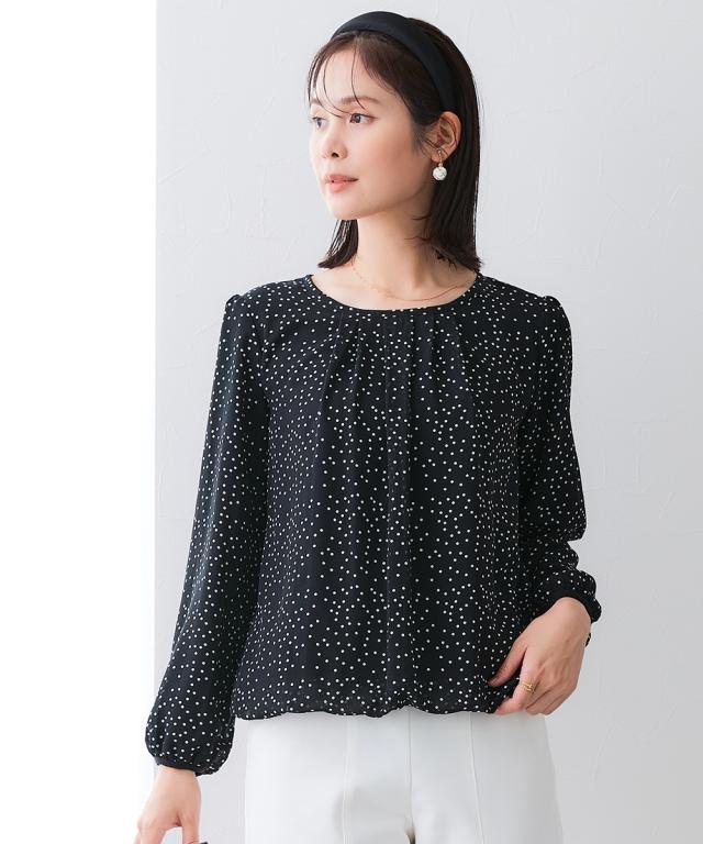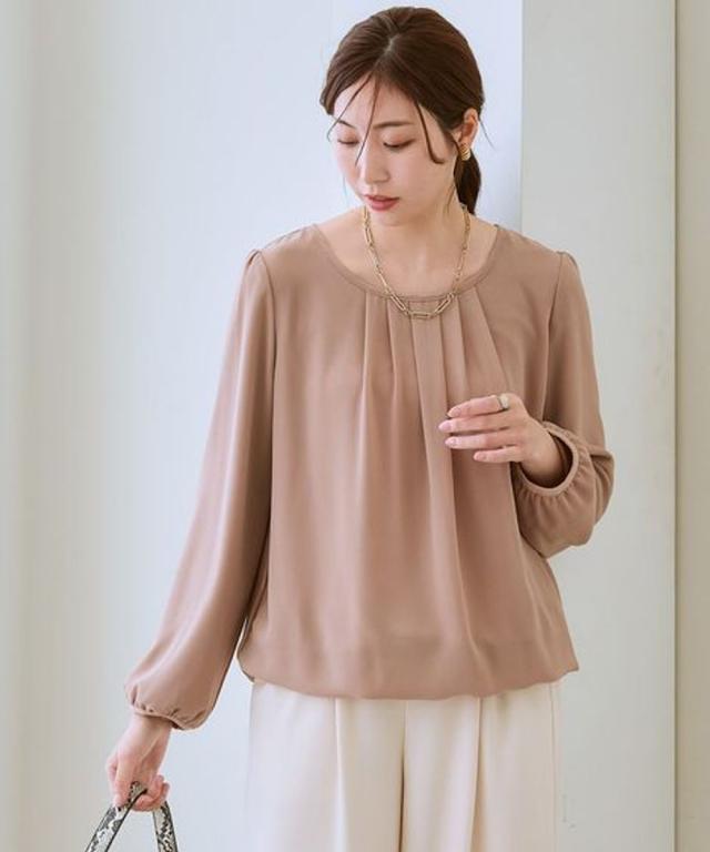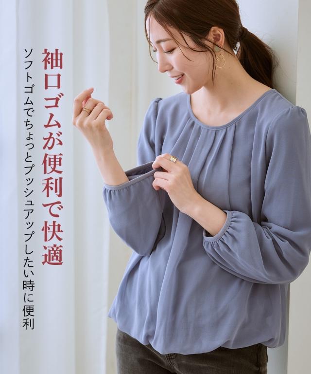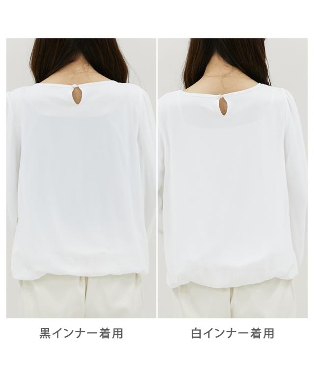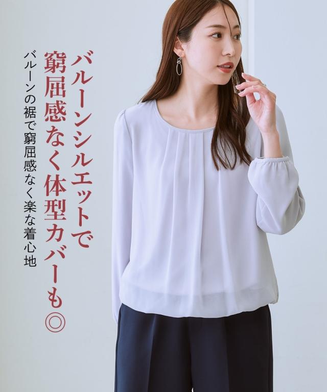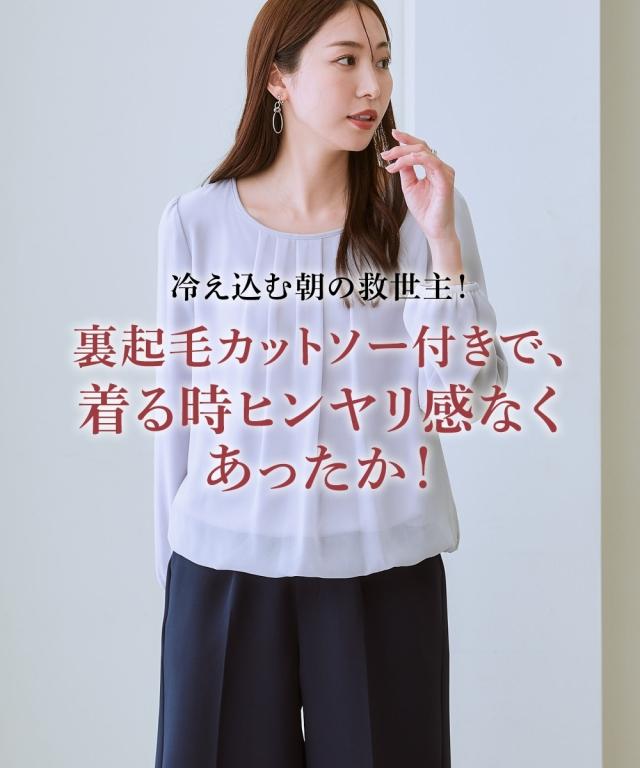 レディース あったか 裏地付 シフォン 前タック ブラウス 冬 S/M/L/LL ニッセン nissen