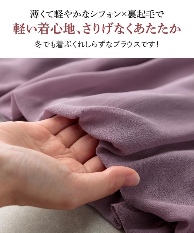 レディース あったか 裏地付 シフォン 前タック ブラウス 冬 S/M/L/LL