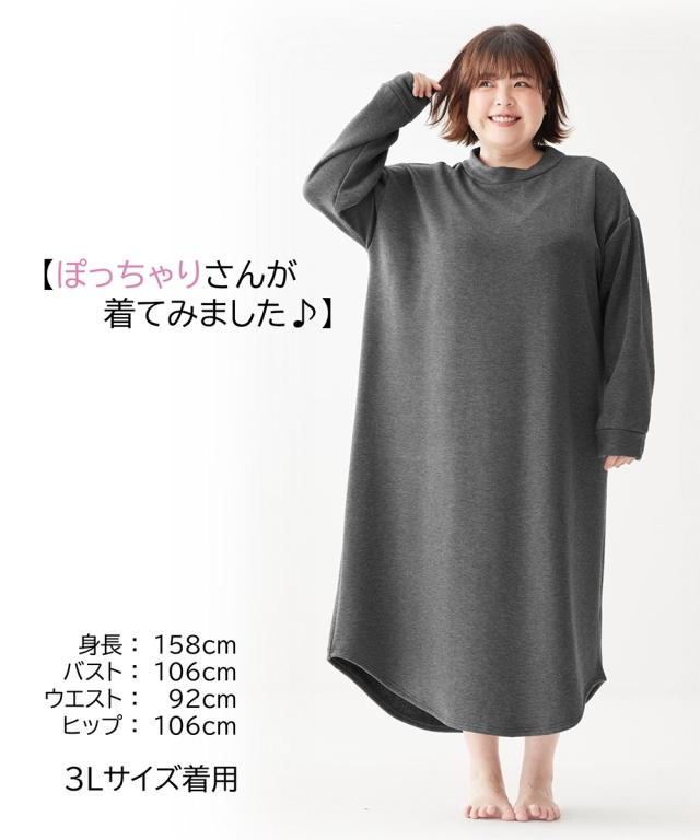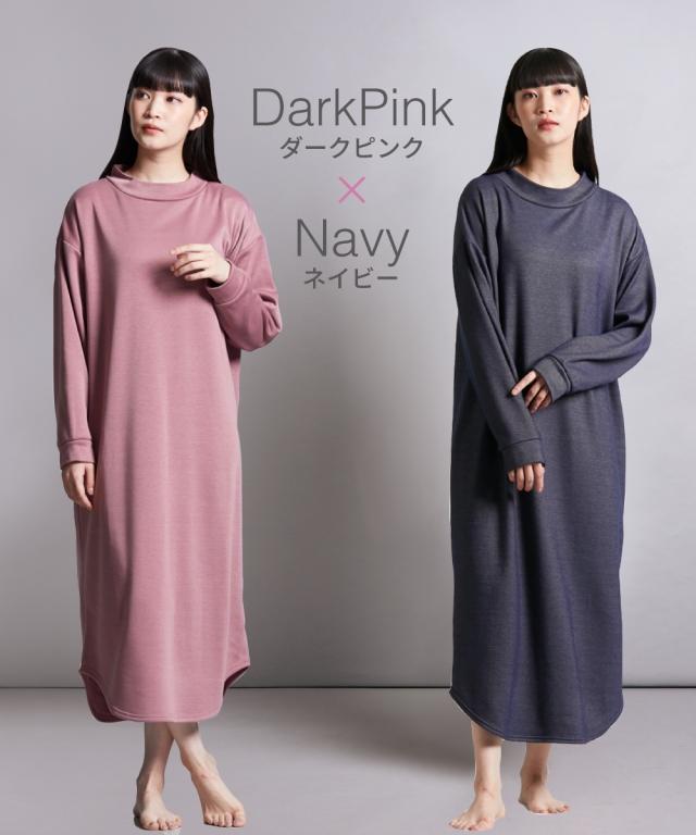 裏シャギー プチハイネックマキシ丈ルームワンピース2枚組