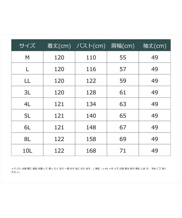 ・ 長袖ワンピース(S〜L)はこちら ・ ワンピース(LL〜3L)はこちら ・ ワンピース(4L〜6L)はこちら ・ ワンピース(8L〜10L)はこちら ・ ワンピース(S〜L)はこちら |