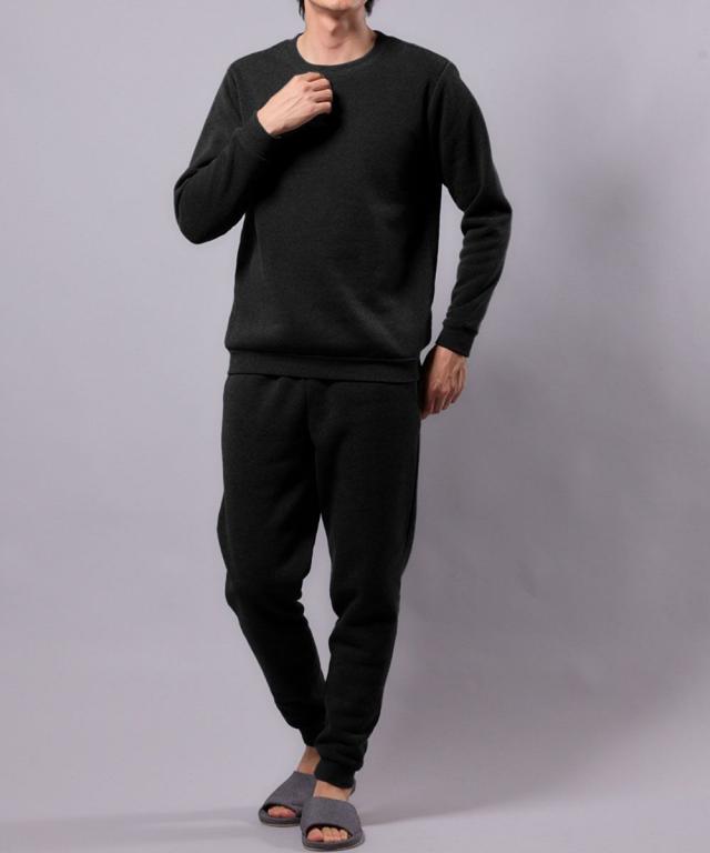 パジャマ メンズ 裏起毛クルーネック ルームウェア 上下セット 冬 チャコールグレー/黒 M/L/LL ニッセン nissen
