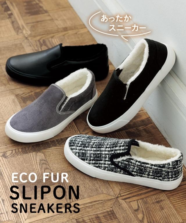 スニーカー レディース エコファー スリッポン 21〜26cm ニッセン nissen