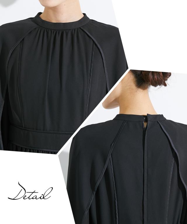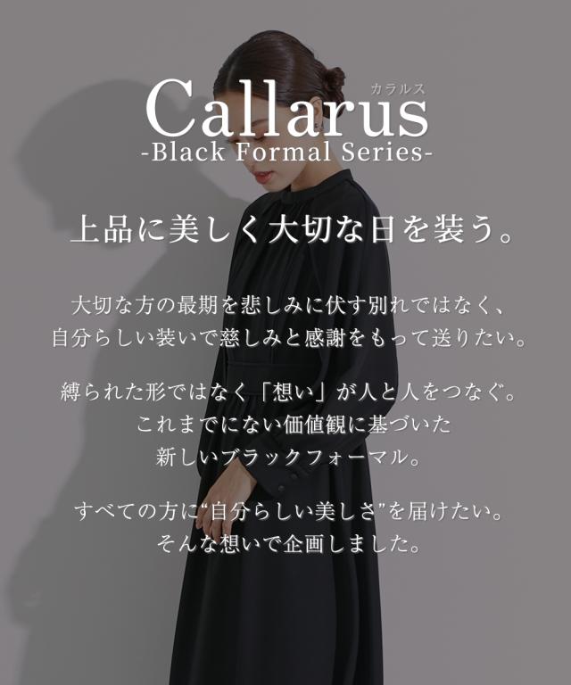【Callarus】 〜for Black Formal〜まっすぐブレない美しさで人々を魅了する花“calla lily”とラテン語で輝くという意味の“clarus”を合わせた造語がブランド名の由来です。<自分らしく上品で美しい装いを大切にする方へ>縛られたカタチではなく、「想い」が人と人をつなぐシーンにもテイストにも年齢にも縛られない自由な着こなしを実現する新しいブラックフォーマル。 こだわりポイントサテンパイピングデザインがこなれた着こなしにケープ風袖デザインで、エレガンスな雰囲気を演出スタンドカラー