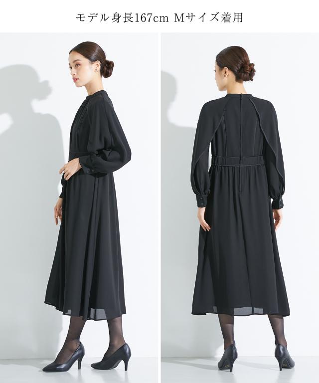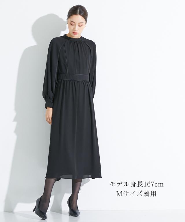 【喪服・礼服】<Callarus>洗える防しわサテンパイピングデザインスタンドカラーワンピース<大きいサイズ有>