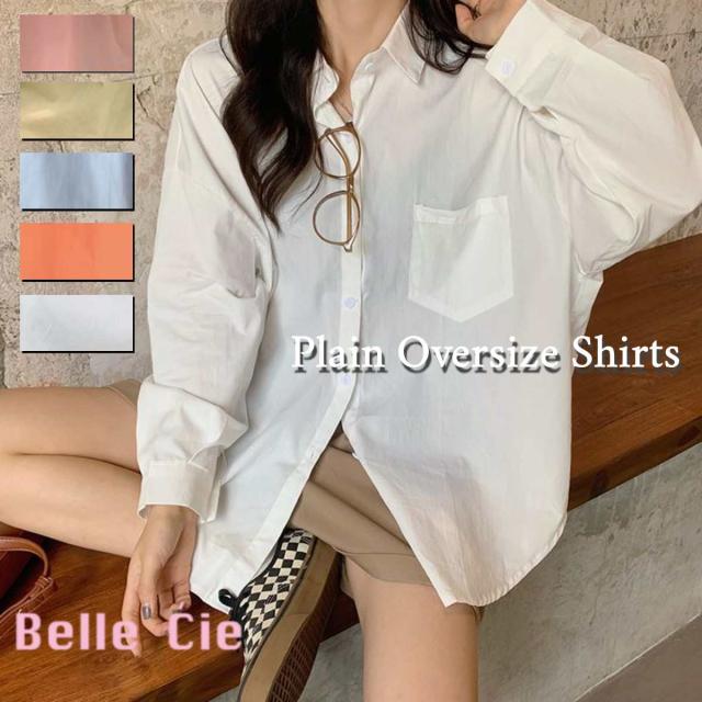 5色カラーシャツ 長袖 シャツ ビッグシャツ レディース 長そで 無地シャツ ルーズシャツ 襟 シンプル オーバーサイズ ブラウス カジュアル ゆったり トップス 秋服 秋 韓国ファッション ホワイト 白 オレンジ ピンク サックス イエロー 韓国 薄手 むじシャツ 量産型