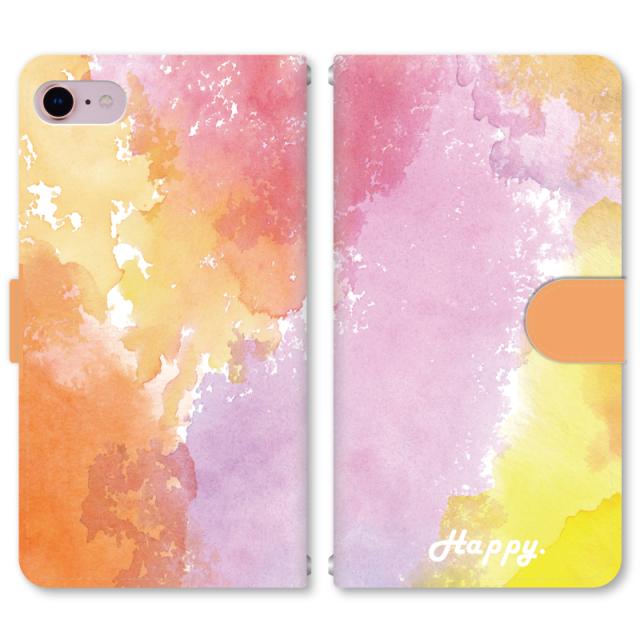 スマホケース 手帳型 iPhone13 iPhoneSE2 アイフォン 8 aquos sense GooglePixel xperia galaxyなど多機種制作対応 m085_ピンク系絵具
