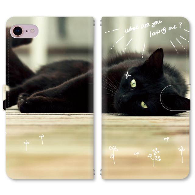 スマホケース 手帳型 iPhone13 iPhoneSE2 アイフォン 8 aquos sense GooglePixel xperia galaxyなど多機種制作対応 m137_黒猫フォト