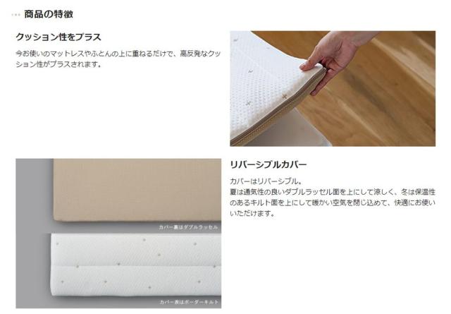 マットレスや敷ふとんの上に重ねるだけで寝心地が変わるオーバーレイマットレスです。