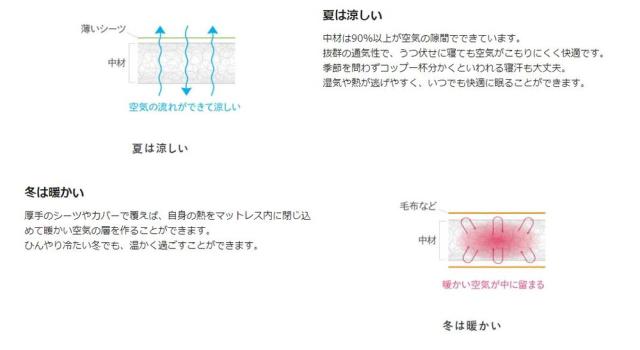 中材は90%以上が空気の隙間でできている構造で、通気性に優れています。