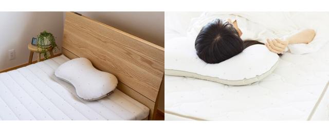 中央が窪んだ形状で仰向けでも横向けでもちょうど良い高さになるように設計しました。