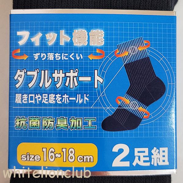 クルー丈ソックス 2足組 抗菌防臭 ダブルサポート キッズ スクールソックス 白 紺 子供用 リブ 靴下 16-18cm/19-21cm/22-24cm【アウトレット】