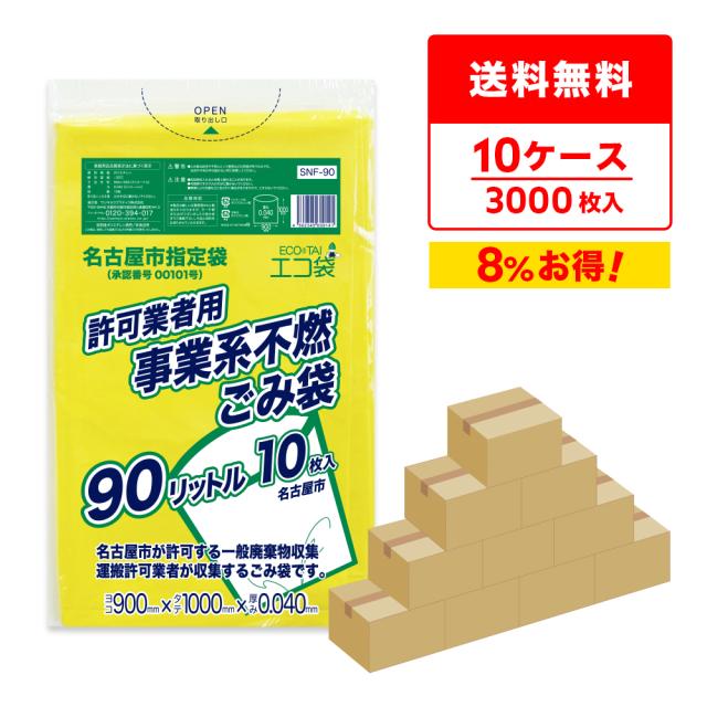 【まとめて10ケース】SNF-90-10 名古屋市事業系許可業者用ごみ袋 90リットル 0.040mm厚 不燃 黄色 10枚x30冊x10箱/ ゴミ袋 ごみ袋 送料無料