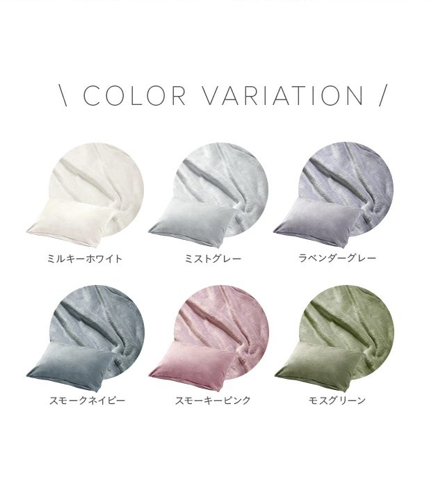 ミルキーホワイト、ミストグレー、ラベンダーグレー、スモーキーピンク、モスグリーン、スモークネイビー