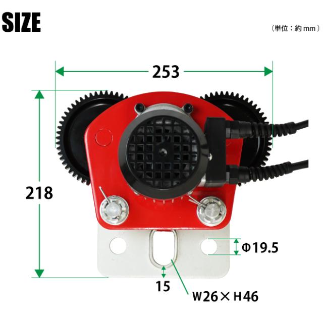 ロングシャフトだから様々なH型鋼・I型鋼に取付可能! ●H型鋼やI型鋼に車輪を乗せ、リモコン操作で横移動させられる電動のトロリーです ●約6mもある長い有線リモコンで楽々操作 ●電動なので物を吊ったままでの横移動も細かい位置合わせも簡単! ●幅はワッシャーの数を調節して最適な懸架状態を得ることが出来ます ●特注のロングシャフトを使用しており、最大幅200mmまでのH型鋼やI型鋼に 装着可能です ●チェーンブロック用、電動ホイスト用、それぞれの取付金具が付属しているので、 兼用でお使いいただけます ●家庭用電源対応で家庭用電源があれば場所を選ばず使用可能です(AC 100V) ★チェーンブロック/電動ホイストは別売りです ※取付けは安全に十分注意して、専門知識のある方が行ってください |